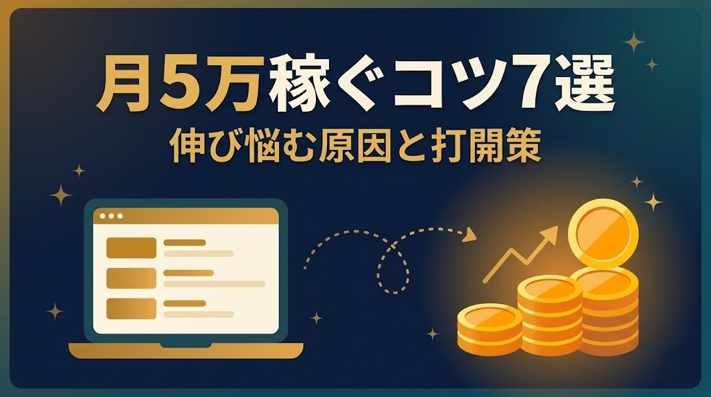 この記事では、私が実際に試してきた月5万達成の7つのコツ・伸び悩む原因・AI活用の3テーマを整理しました。
